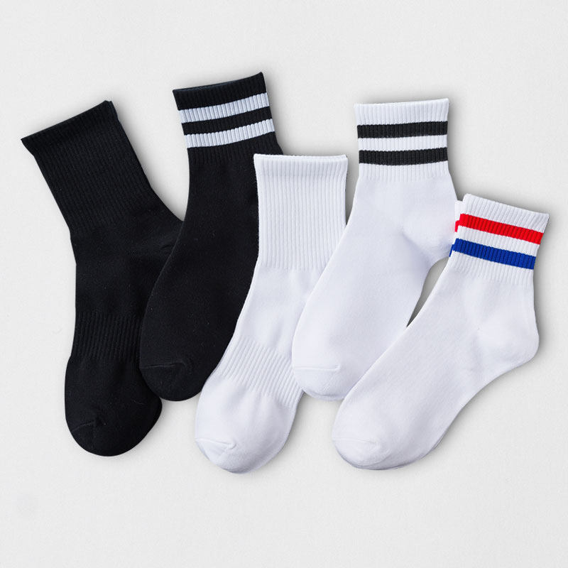 5双中筒袜男女纯色黑白条纹 两条杠中腰防臭工装学院风韩纯棉潮袜热门设计联盟服务商